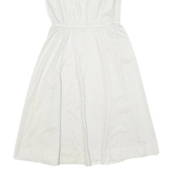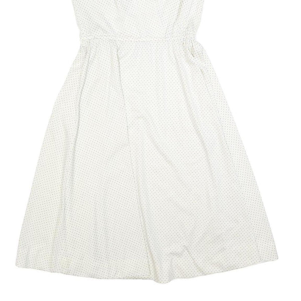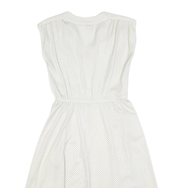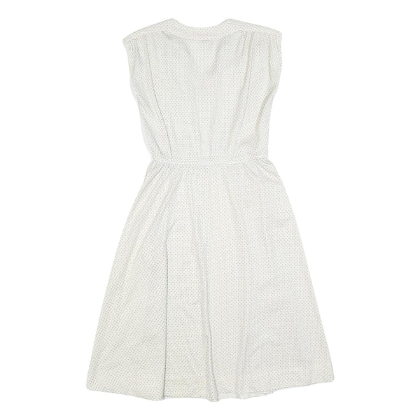 C&A Womens White Polka Dot Day Polyester Dress S Sleeveless Midi V-Neck