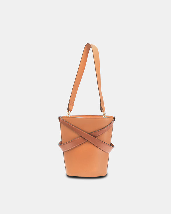 Two ways to style this bucket bag––handheld with the fixed cross straps or more casually, with the detachable strap as a shoulder bag. The 4cm wide detachable strap allows for extra comfort on the shoulders.