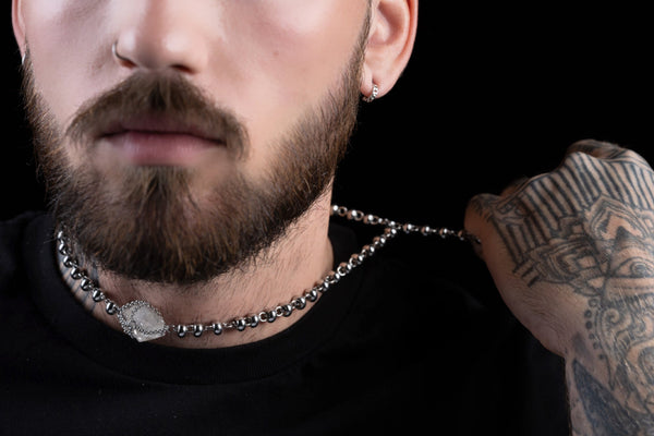 A stunning, bold and beautiful necklace, this Caged Quartz gemstone is centered between linked polished stainless steel beads. Moreover, this necklace is durable, waterproof, and tarnish-resistant.