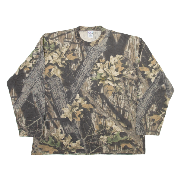 CAL CRU Forest Camo Mens T-Shirt Beige Long Sleeve XL