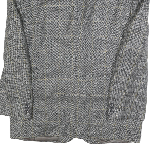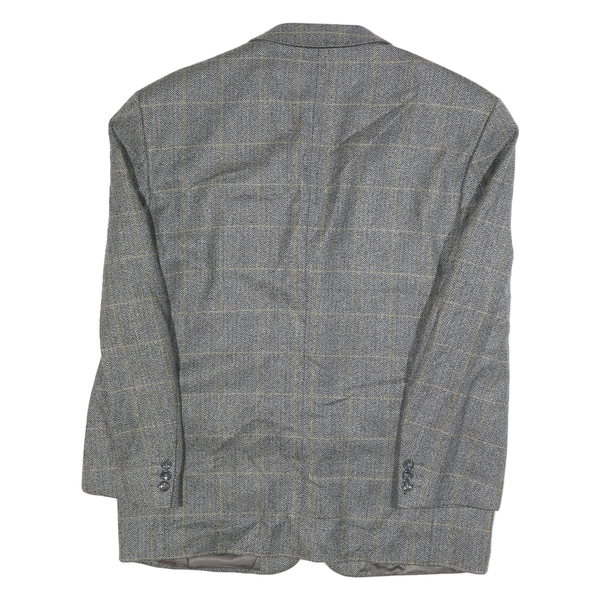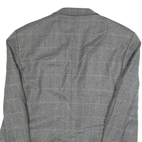 CALVIN COOPER Mens Grey Wool Check Tailored Jacket L Button Closure