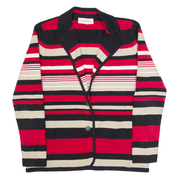 Calvin klein blazer style womens patterned cardigan red striped v-neck m