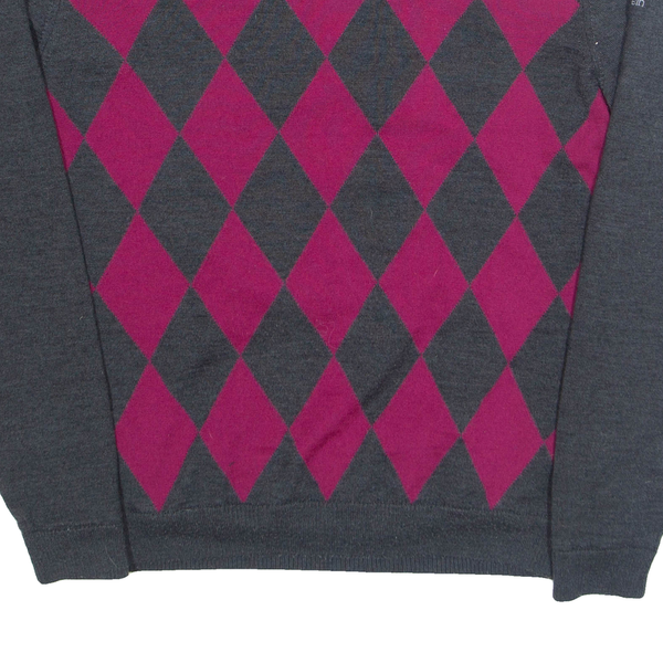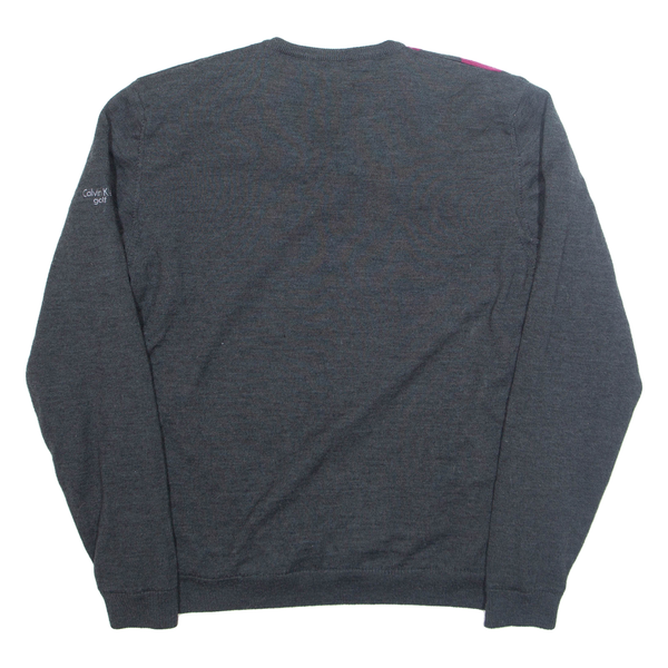 CALVIN KLEIN GOLF Mens Patterned Jumper Grey Diamond V-Neck Tight Knit Wool M