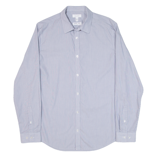 CALVIN KLEIN Infinite Slim Fit Mens Shirt Blue Striped Long Sleeve M
