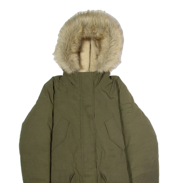 Calvin klein jeans faux fur lined womens parka coat green hooded m