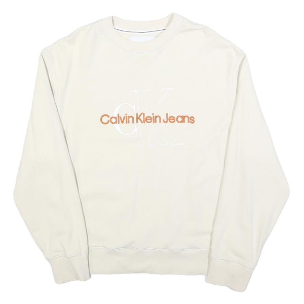 CALVIN KLEIN JEANS Mens Cream Sweatshirt Crew Neck M Cotton Pullover Logo