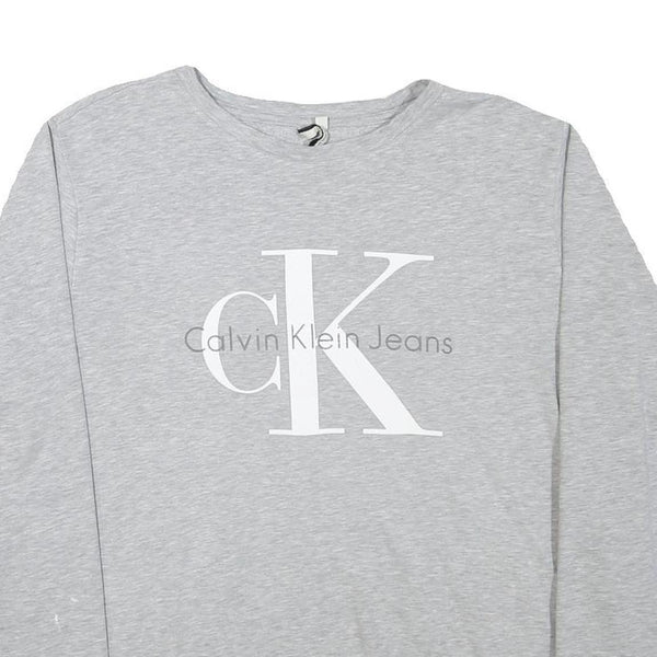 CALVIN KLEIN JEANS Mens Grey Crew Neck M Cotton Blend Pullover Logo Sweatshirt