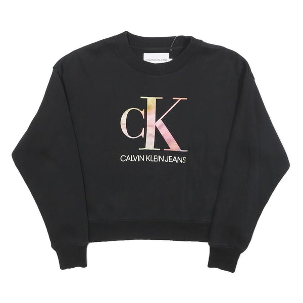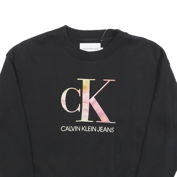 CALVIN KLEIN JEANS Womens Black Cotton Blend Crew Neck M Logo Print Sweatshirt