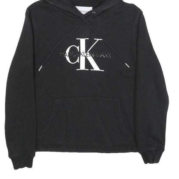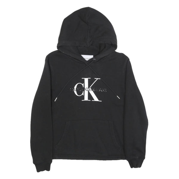 CALVIN KLEIN JEANS Womens Black Hoodie S CK Logo Pullover Cotton Blend