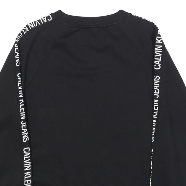CALVIN KLEIN JEANS Womens Black Sweatshirt Crew Neck XS Logo Tape Detail