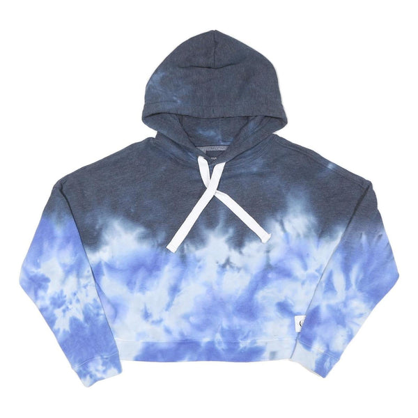 Calvin klein jeans womens blue & grey tie dye pullover hoodie s crop top