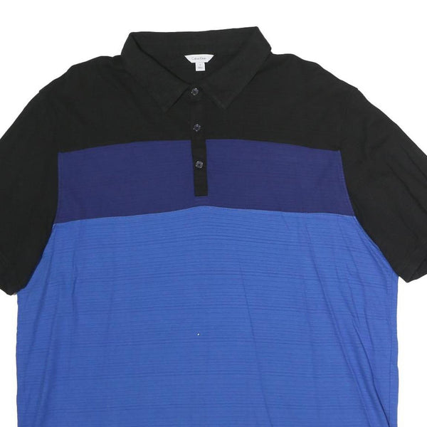 CALVIN KLEIN Mens Black & Blue Polo Shirt XL Cotton Short Sleeve Colourblock
