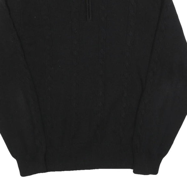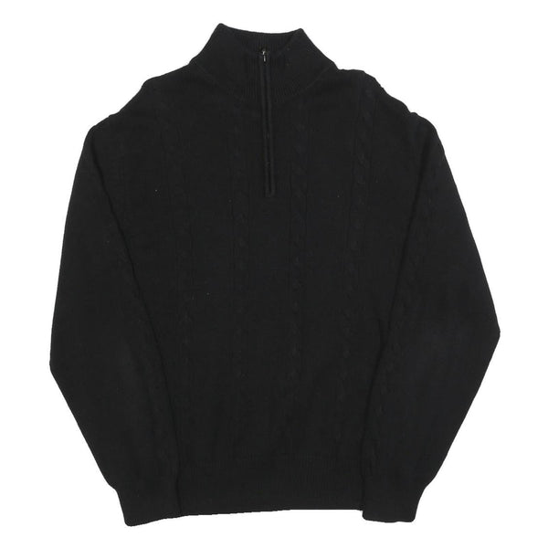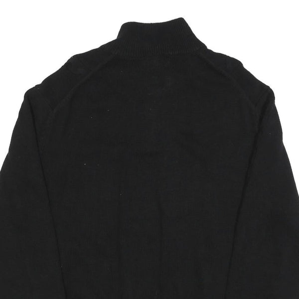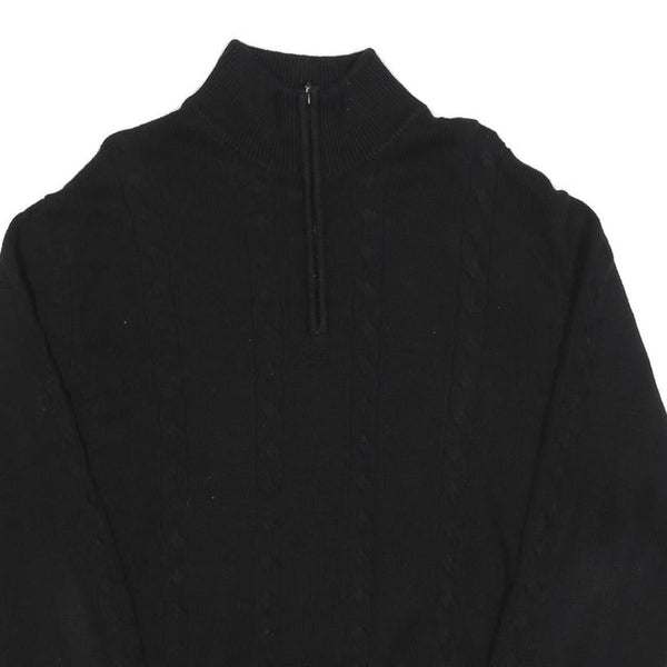 CALVIN KLEIN Mens Black Cotton Patterned Pullover Quarter Zip Jumper XL Stylish
