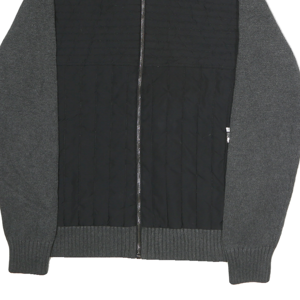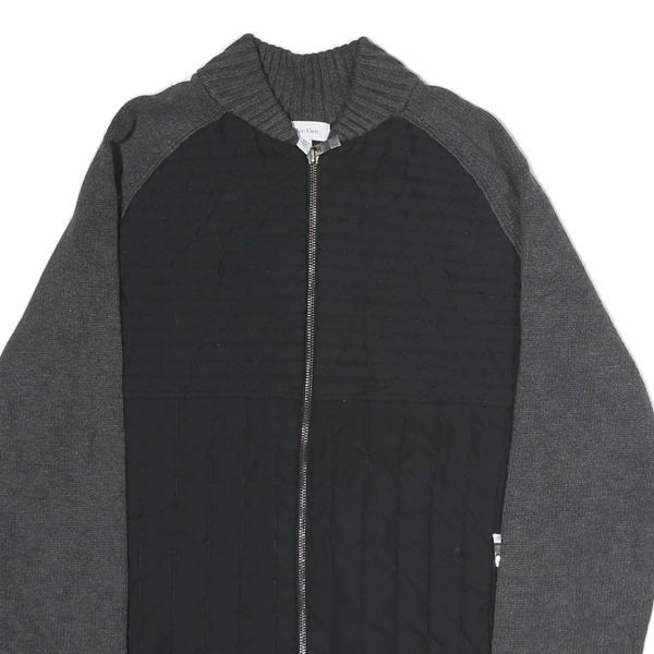 CALVIN KLEIN Mens Black & Grey Patterned Cotton Jumper Full Zip L Quilted Casual