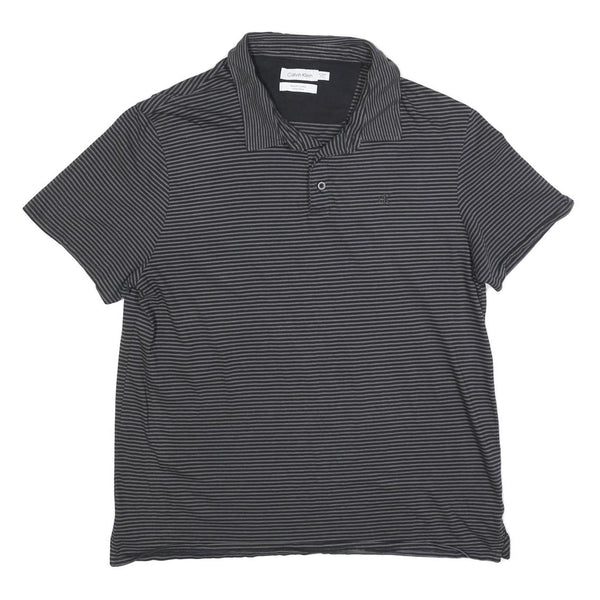 CALVIN KLEIN Mens Black & Grey Striped Short Sleeve Polo Shirt XL Classic Fit