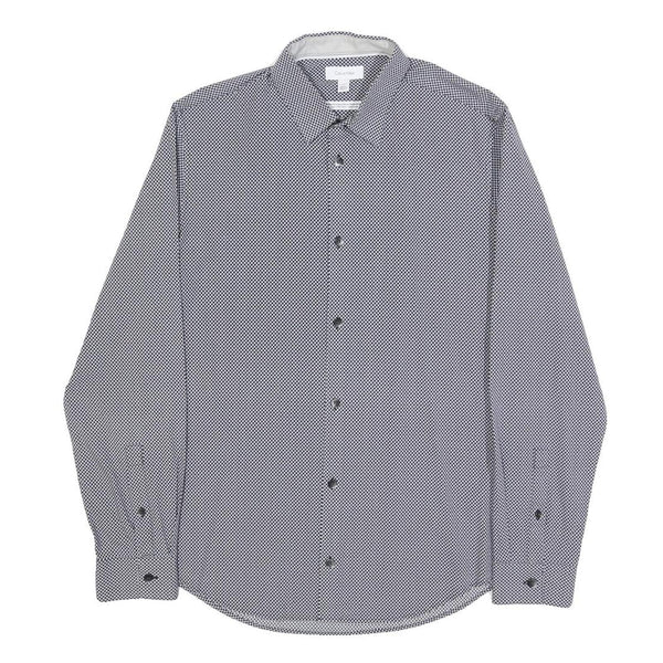 CALVIN KLEIN Mens Blue & White Patterned Shirt S Cotton Blend Smart Casual