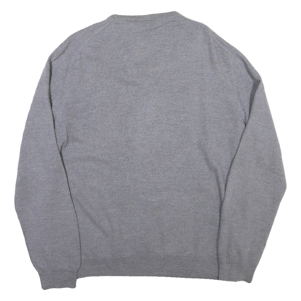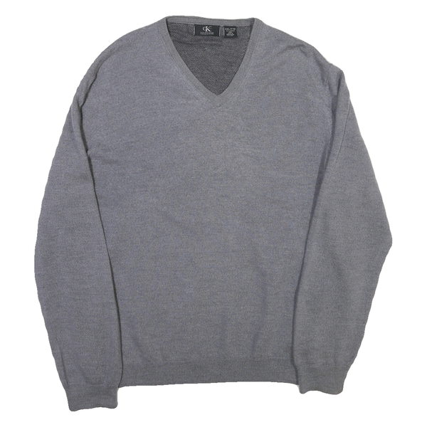 CALVIN KLEIN Mens Grey Plain Cotton Blend V-Neck Basic Knit Jumper 2XL Classic