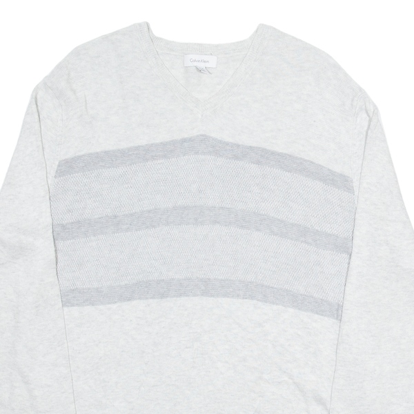CALVIN KLEIN Mens Jumper Grey V-Neck Tight Knit M