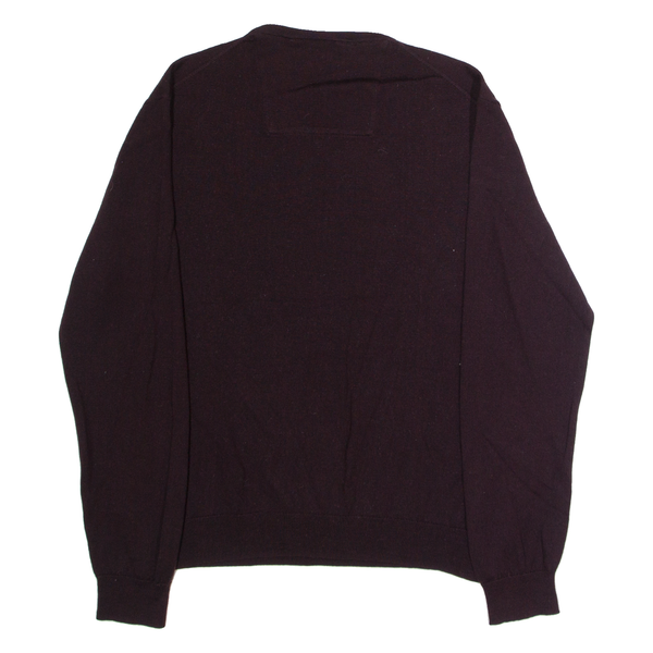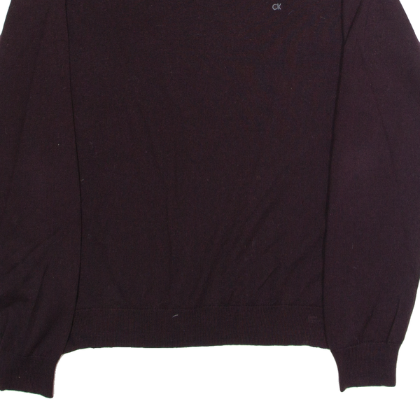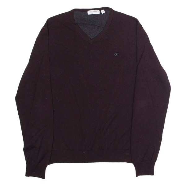 CALVIN KLEIN Mens Jumper Maroon V-Neck Tight Knit Wool L