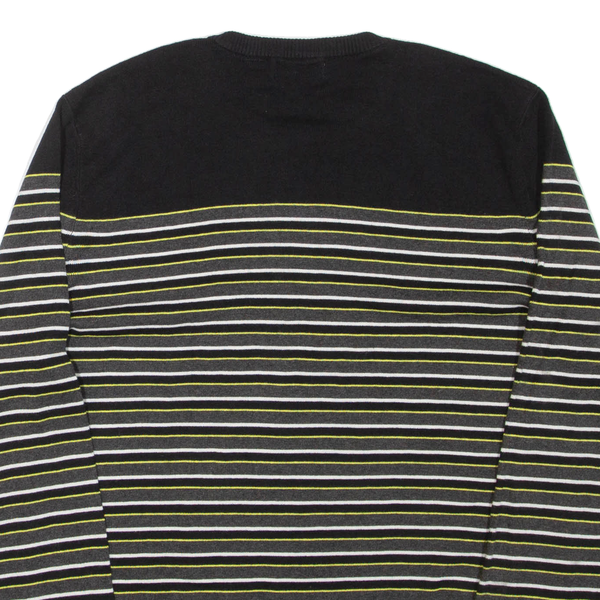 CALVIN KLEIN Mens Patterned Jumper Black Striped Tight Knit L