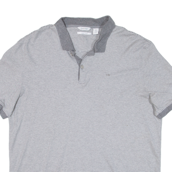 CALVIN KLEIN Mens Polo Shirt Grey Striped L