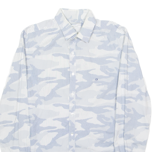 CALVIN KLEIN Mens Shirt White Crazy Pattern Long Sleeve S
