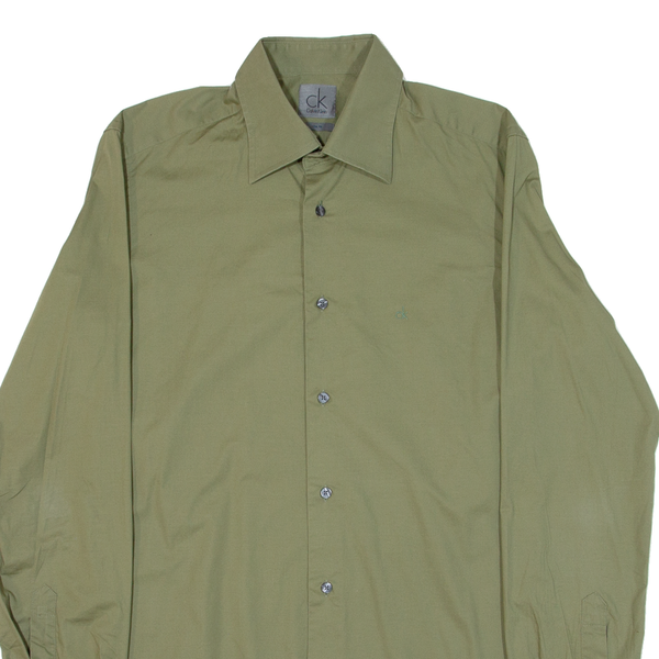 CALVIN KLEIN Slim Fit Mens Plain Shirt Green Long Sleeve S