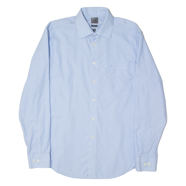 CALVIN KLEIN Slim Fit Mens Shirt Blue Striped Long Sleeve L