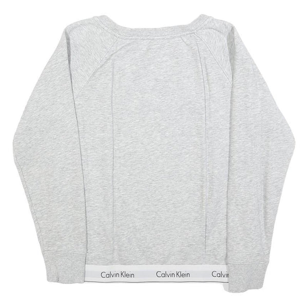 CALVIN KLEIN Womens Grey Sweatshirt Crew Neck S Logo Trim Pullover Cotton Blend