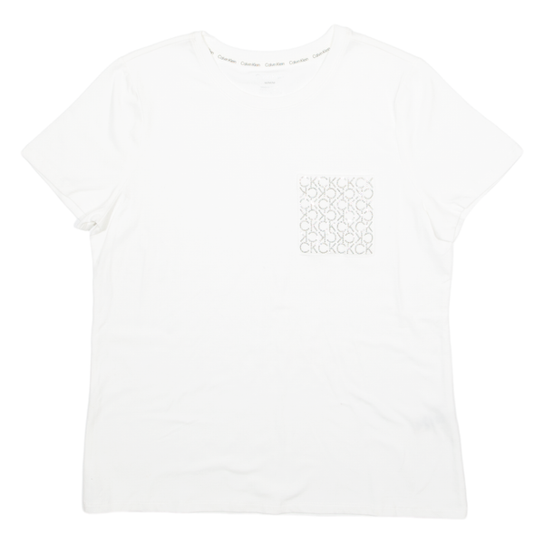 CALVIN KLEIN Womens T-Shirt White Crew Neck M