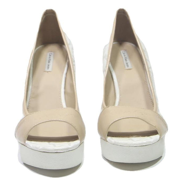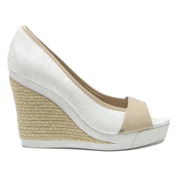 CALVIN KLEIN Womens Wedge Sandals White & Beige Synthetic UK 8 Peep Toe Platform