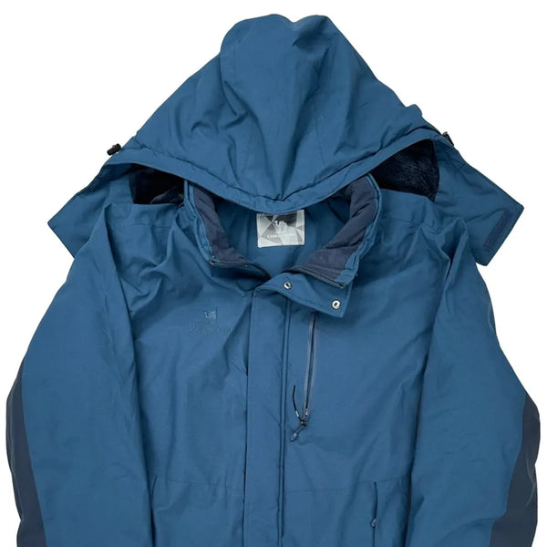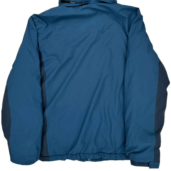 Blue Ski Jacket With Hood, Minor Wear On The Sleeves.