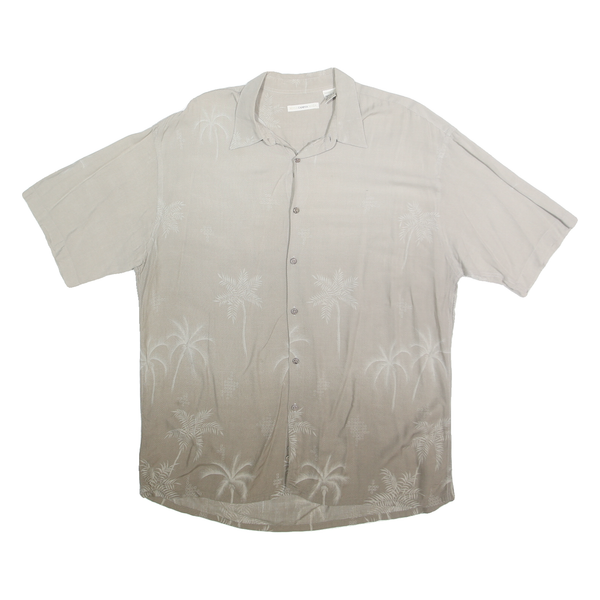CAMPIA MODA Mens Beige Rayon Shirt XL Palm Tree Design Casual Summer Button