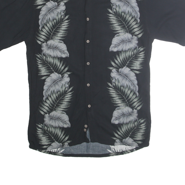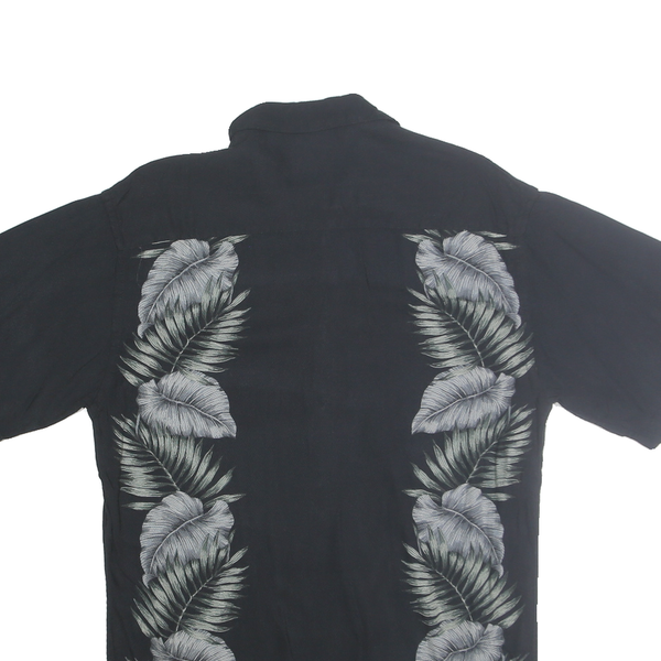 CAMPIA MODA Mens Black Shirt S Rayon Tropical Leaf Print Casual Summer