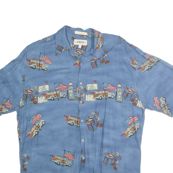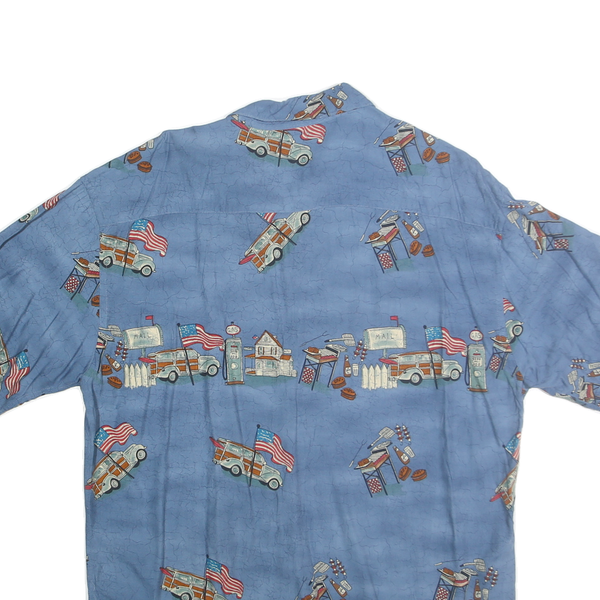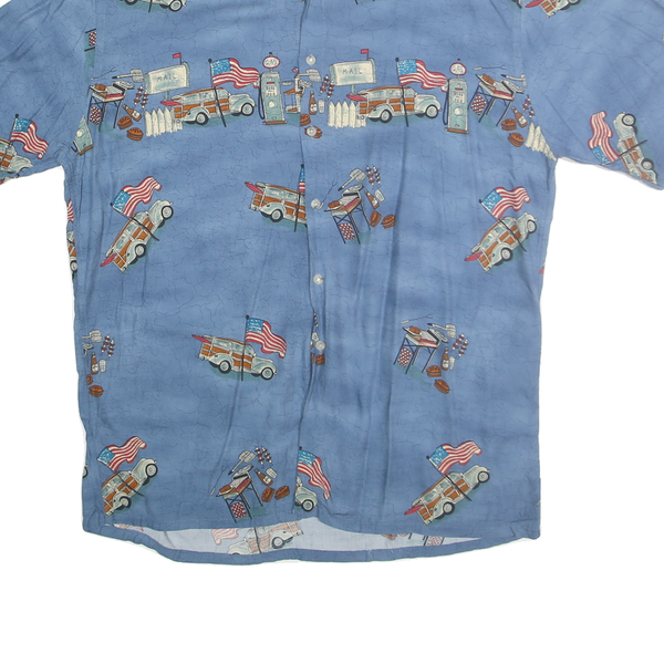 CAMPIA MODA Mens Blue Rayon L Printed Short Sleeve Shirt Retro Style