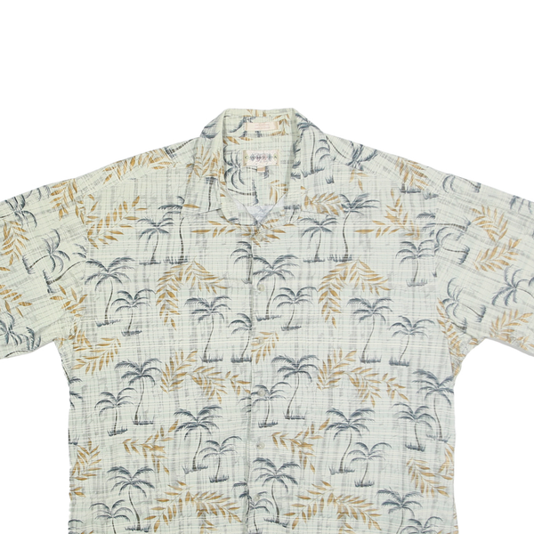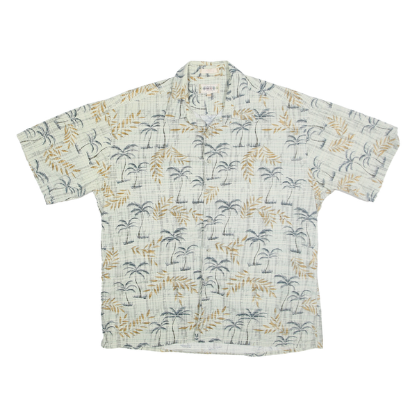 CAMPIA MODA Mens White & Beige Palm Tree Print Cotton Shirt XL Summer Casual