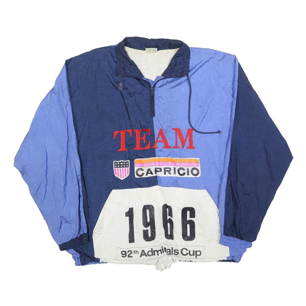 This CAPRICO mens jacket features a striking colourblock design in blue and navy hues, enhanced with embroidered text including TEAM, CAPRICO, 1966, and 92th Admirals Cup for a vintage sporting appeal.