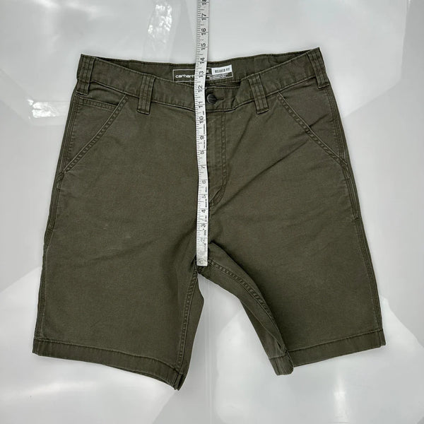 Carhartt Carpenter Shorts, fit a 34″ Waist and 9″ inseam.