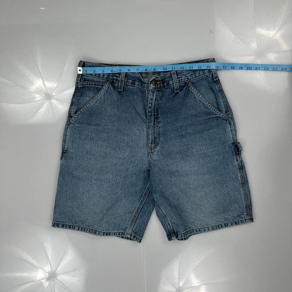 Carhartt Denim Shorts, fit a 32″ Waist and 9″ inseam.