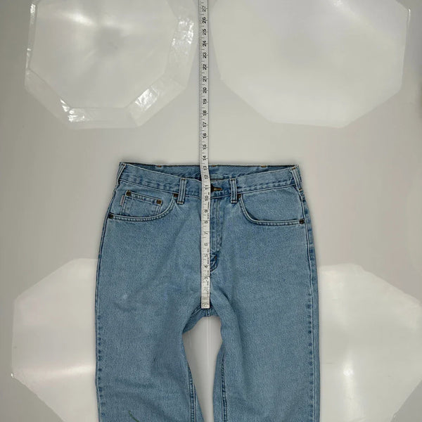 Light Wash Carhartt Jeans With Minor Marks On The Front.