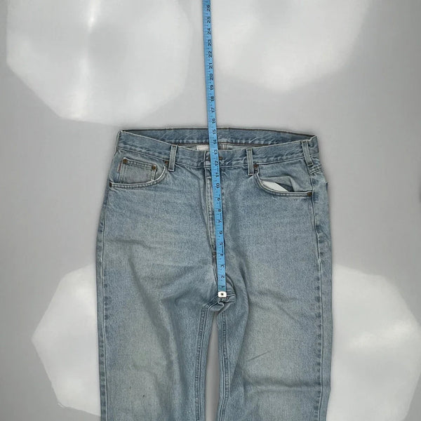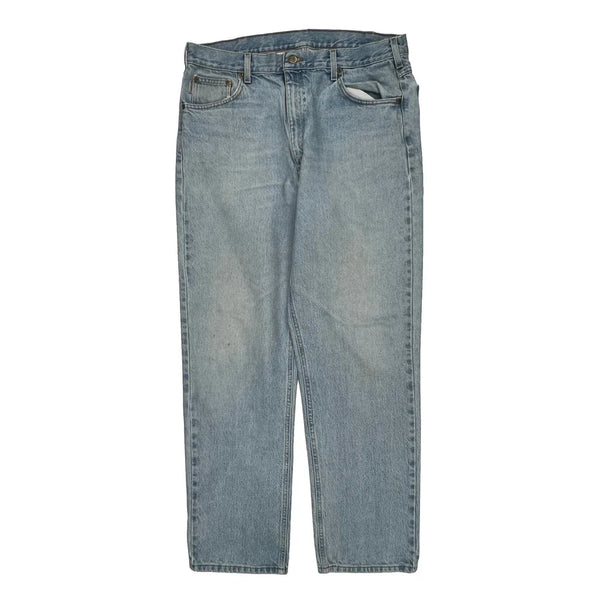 Light Wash Carhartt Jeans With Slight Wear Marks On The Front.