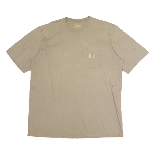 CARHARTT Mens Beige Pocket T-Shirt XL Short Sleeve Crew Neck Classic Cotton