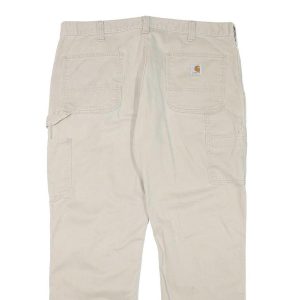 CARHARTT Mens Beige Relaxed Straight Trousers W38 L28 Cotton Blend Zip Casual