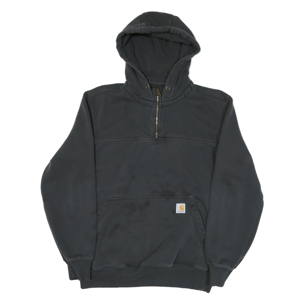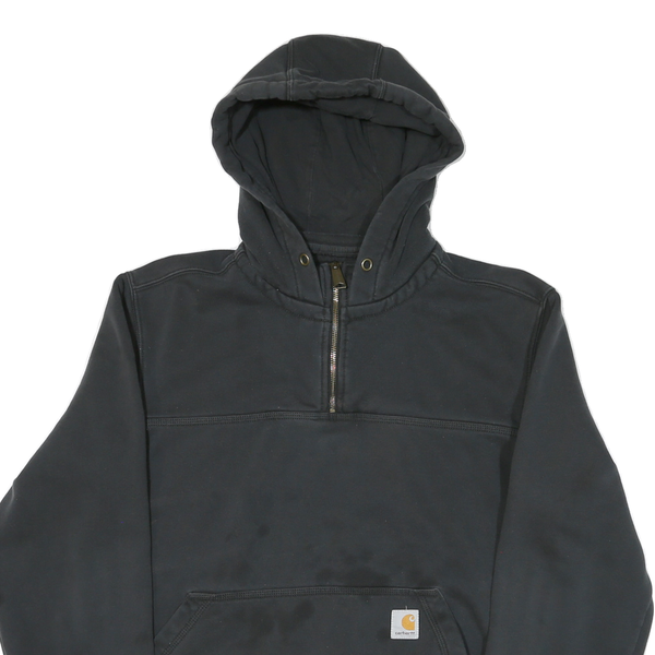 CARHARTT Mens Black ¼ Zip Hooded Sweatshirt M Cotton Blend Workwear