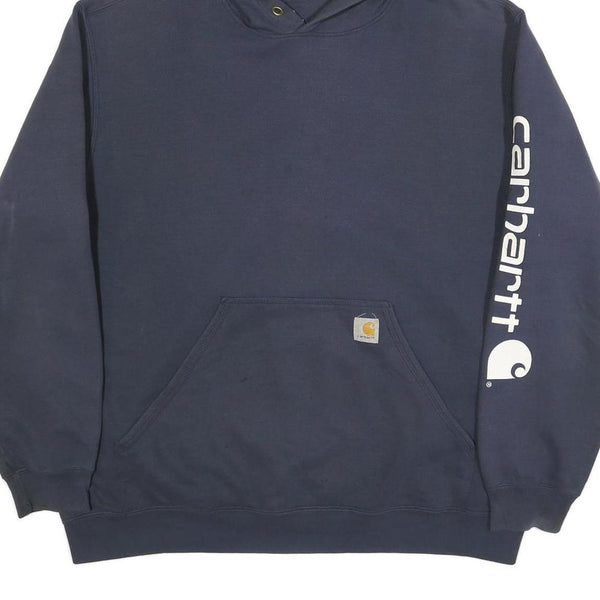 CARHARTT Mens Blue Hoodie XL Sleeve Logo Cotton Blend Pullover Casual