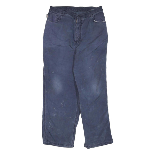 CARHARTT Mens Cotton Blend Blue Regular Straight Trousers W34 L28 Workwear Zip