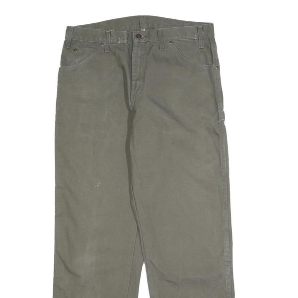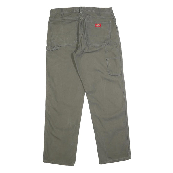 DICKIES Mens Cotton Green Regular Straight Trousers W34 L32 Workwear Zip