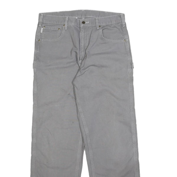 CARHARTT Mens Cotton Grey Loose Straight Trousers W34 L34 Workwear Utility
