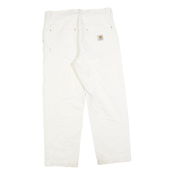 CARHARTT Mens Jeans White Regular Straight Denim W34 L28 Workwear Durable Zip