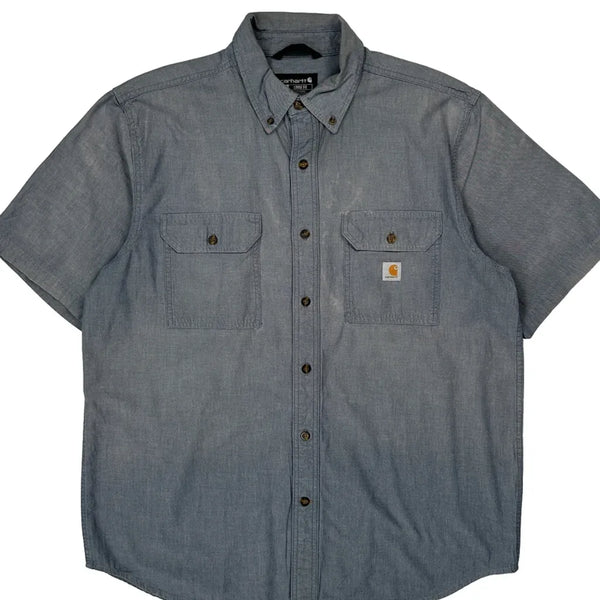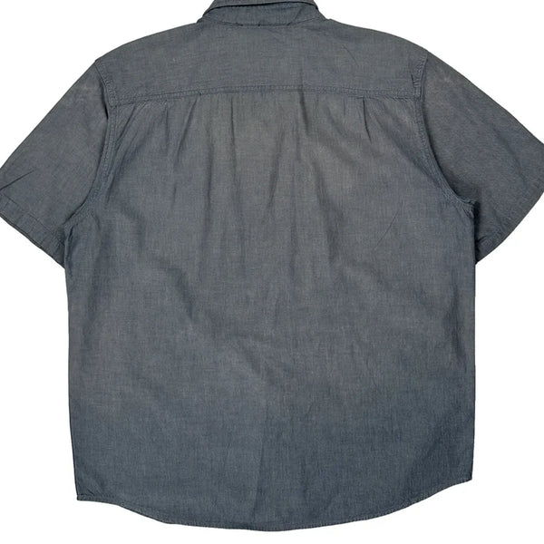 Short Sleeve Gray Shirt With Button-Down Collar And Two Chest Pockets.